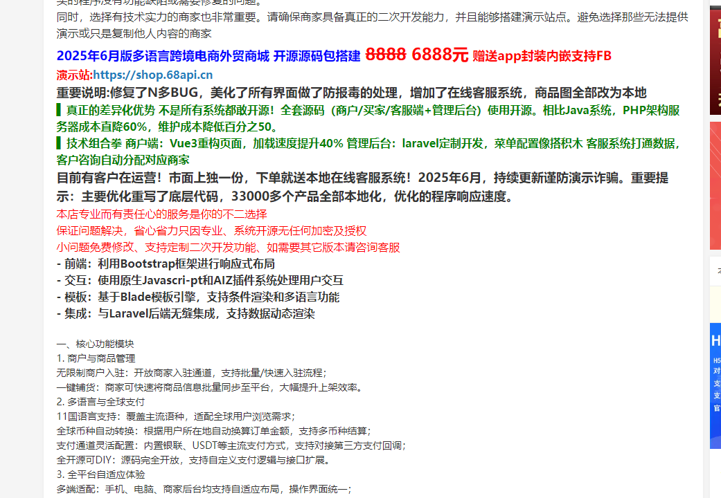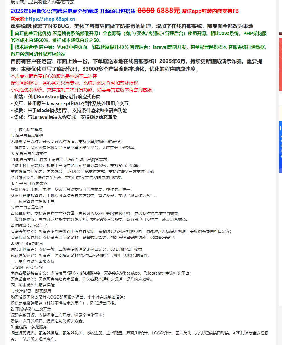 古人云:"君子爱财,取之有道。" 本套程序基于开源框架开发,我虽不能声称拥有完全所有权,但作为一名从业近20年的资深全栈程序员,我在过去大半年里夙兴夜寐,对这套程序进行了深度改造:新增了三分之一的功能模块,修复了数不清的BUG——真可谓披星戴月,殚精竭虑,因为原始版本可以说是千疮百孔,甚至还存在诸多安全后门。
