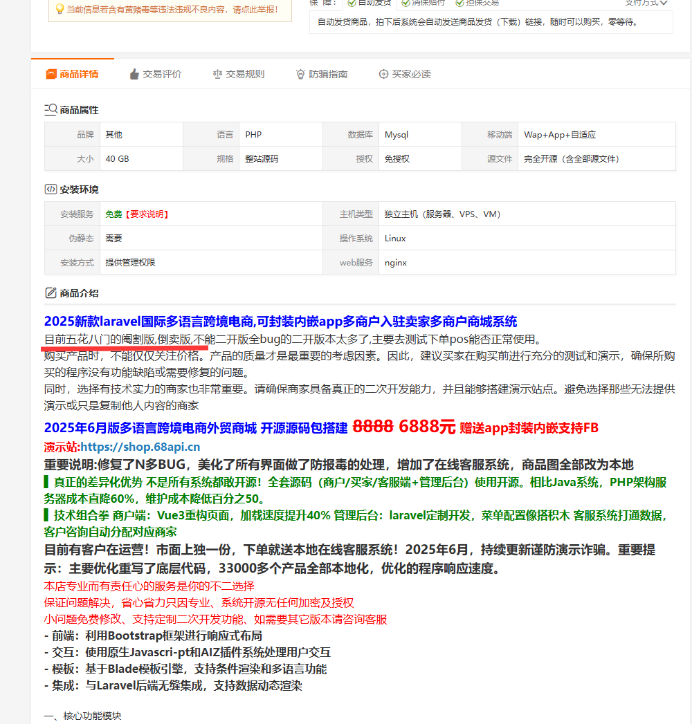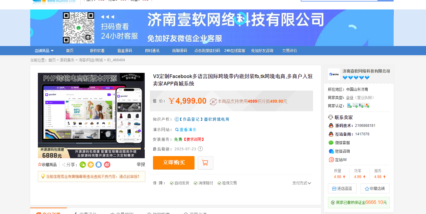 大约半年前,我开始在互站销售这套经过深度优化的程序,定价3888元一套,月销量并不高,本想着勤俭持家,补贴家用,毕竟只能靠代码谋生。我从未设置什么后门或验证机制——毕竟这是基于开源框架改造的,我也没有绝对的所有权,但我确实在力所能及的范围内持续更新和修复BUG,可谓兢兢业业,未敢稍懈。