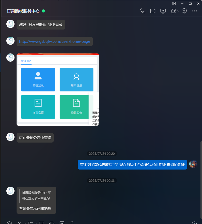甘肃版权局已经回复,将在5日内撤销您的虚假版权登记。互站的举报我刚刚提交完毕。